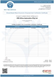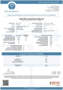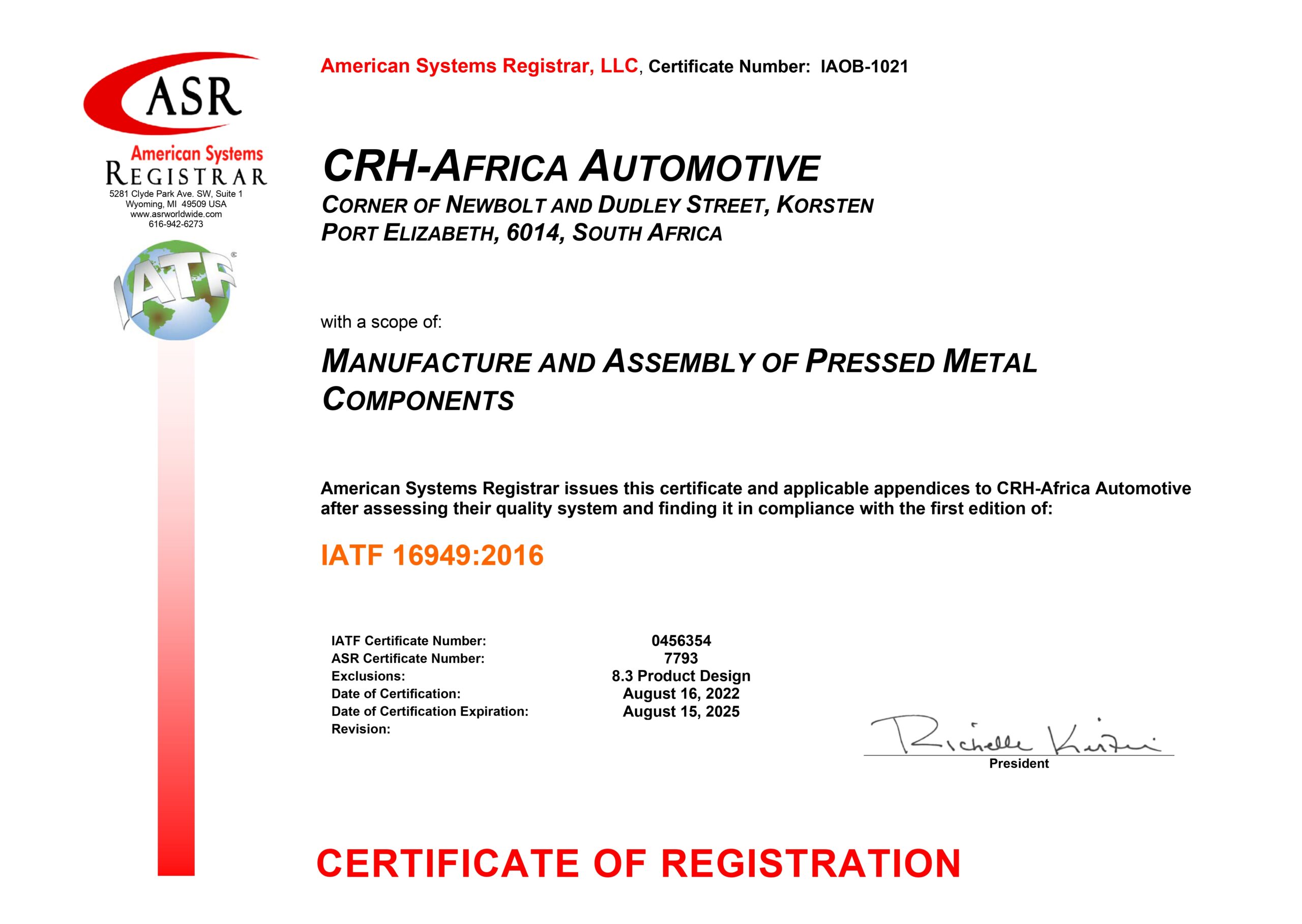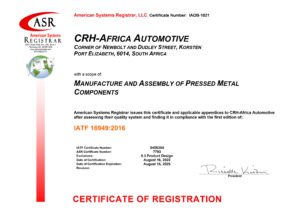 CRH-Africa is accredited to the IATF16949 QMS and ISO140001 international standards and supports the following tier 1 and OEM customers: